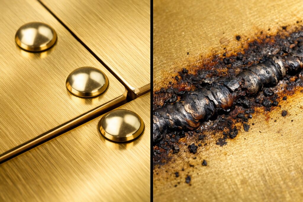 표면에 고온의 용접기가 닿는 순간 프리미엄 PVD 코팅이 까맣게 타버리며,